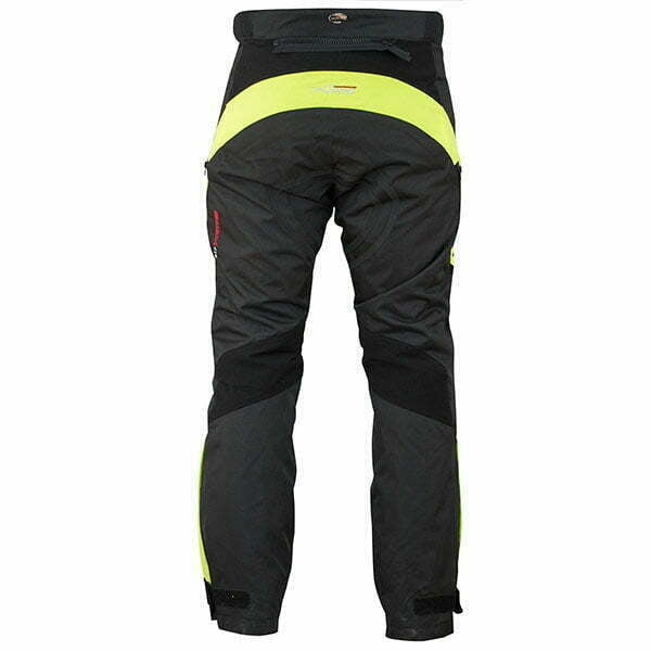 Textilhose mit reflektierenden Streifen. Hohe Beständigkeit gegen Witterungseinflüsse und Verschleiß. Abnehmbare Kniepolster. Abnehmbares Wärmeleitpad. Wasserdichte Luftmembran. Seitentaschen mit Belüftungsreißverschluss. Hose/Jacke mit Reißverschluss.